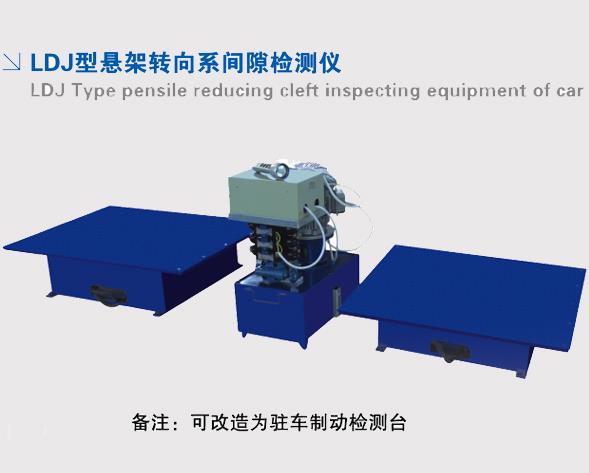 汽車檢測線的LDJ-13型底盤間隙測試儀是用來快速檢測汽車車輪轉向及懸架系統的間隙。并發現其結構的隱患。該設備廣泛適用于汽車制造廠、汽車修理廠和汽車綜合性能檢測等部門。