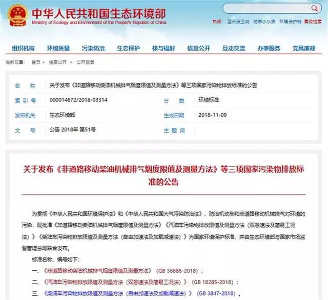 早在去年11月,國家生態(tài)環(huán)境部發(fā)布了《汽油車污染物排放限值及測量方法(雙怠速法及簡易工況法)》(GB 18285-2018)等三項(xiàng)國家污染物排放標(biāo)準(zhǔn),并將于2019年5月1日起正式實(shí)施。