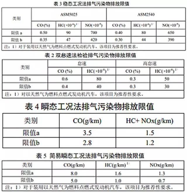 新規(guī)實(shí)施后,對于注冊登記車輛和在用汽車,其CO、NC、NO等污染排放物質(zhì)的臨界參數(shù)有所降低,嚴(yán)控車輛排放污染,并分設(shè)限值A(chǔ)和限值B。
