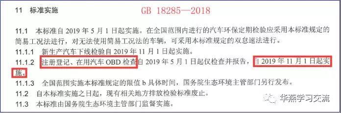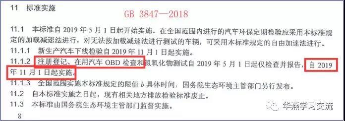 按照GB 18285—2018《汽油車污染物排放限值及測(cè)量方法(雙怠速法及簡(jiǎn)易工況法)》和GB 3847—2018《柴油車污染物排放限值及測(cè)量方法(自由加速法及加載減速法)》的要求,汽油車和柴油車注冊(cè)登記、在用汽車OBD檢查自2019年11月1日起實(shí)施。